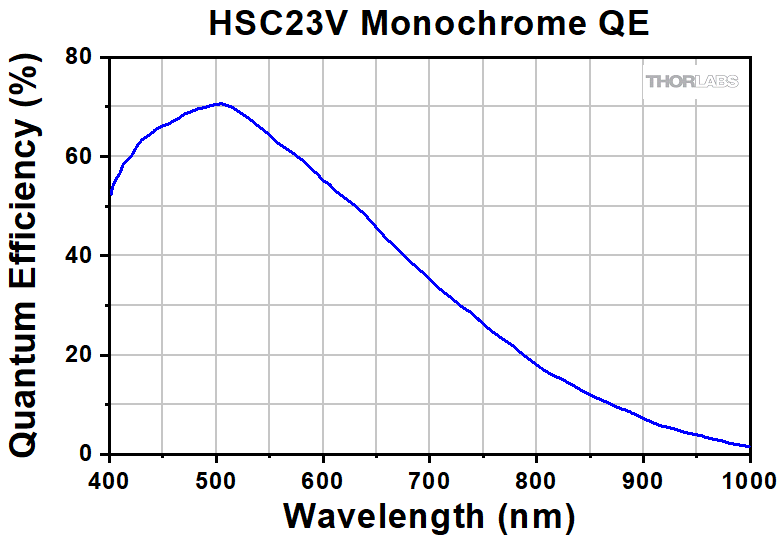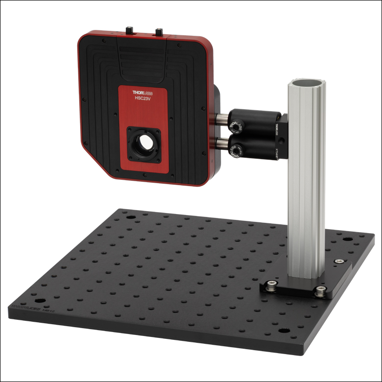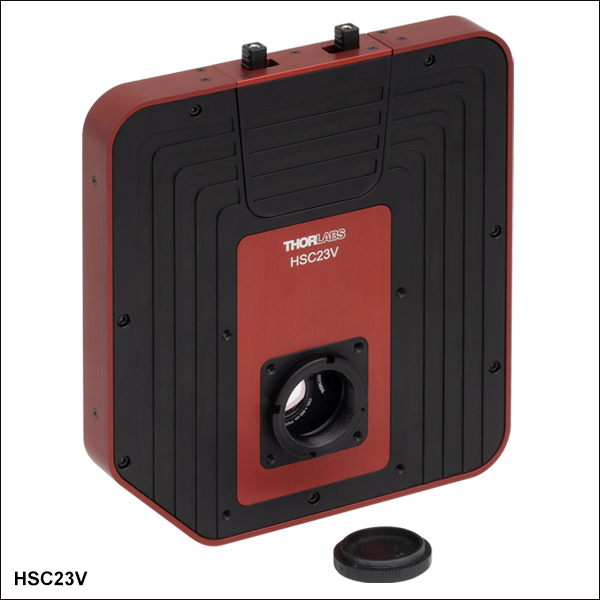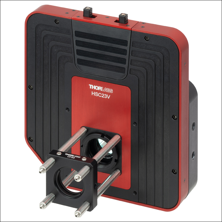 The HSC23V multispectral imaging system features a 1/1.2" format, monochrome CMOS 2.3 MP sensor. The global shutter of the imaging system scans the entire field of view simultaneously, allowing for the imaging of fast-moving objects. A C-mount (1.000"-32) adapter is included for compatibility with many machine vision camera lenses and C-mount extension tubes. A replacement C-Mount adapter, SM1A10A, is available separately. Removing this adapter exposes SM1 (1.035"-40) threading that can be used to attach a Ø1" Lens Tube or SM1-Threaded Adapter. Please note that dust and debris may collect on the sensor face plate while the clear window is removed. Care must be taken when cleaning this face plate to avoid damaging the sensor.