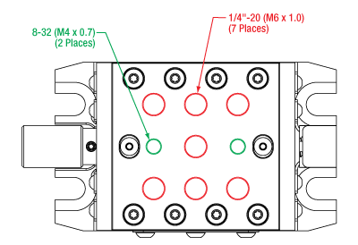 - Mounting Surface has Seventeen 1/4"-20 (M6) Tapped Blind Holes, 0.30" (7.6 mm) Deep