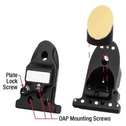 Figure 1.2 Three 4-40 screws on the back of the mounting plate hold the mirror in place, while the lock screw secures the mounting plate to the housing body.