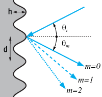 This issue can be resolved by creating a repeating surface pattern, which produces a different surface reflection geometry. Diffraction gratings of this type are commonly referred to as blazed (or ruled) gratings. More information about this can be found in the section below.