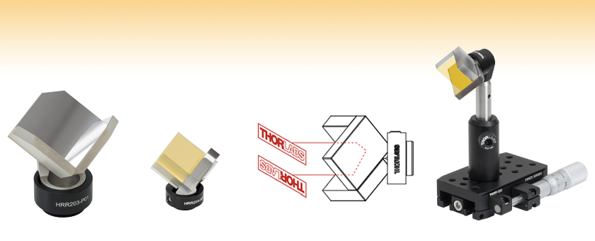 Thorlabs' Hollow Retroreflector Mirrors use three orthogonal surfaces to reflect light back to the source at the same angle as the incident beam, regardless of changes in position or alignment, creating an inverted image. This insensitivity to mirror alignment and lack of refraction through glass make these hollow retroreflectors ideal for applications where dispersion, chromatic aberrations, material absorption, or front surface reflections from glass prisms are undesirable. Examples of such applications include interferometry and optical delay lines.