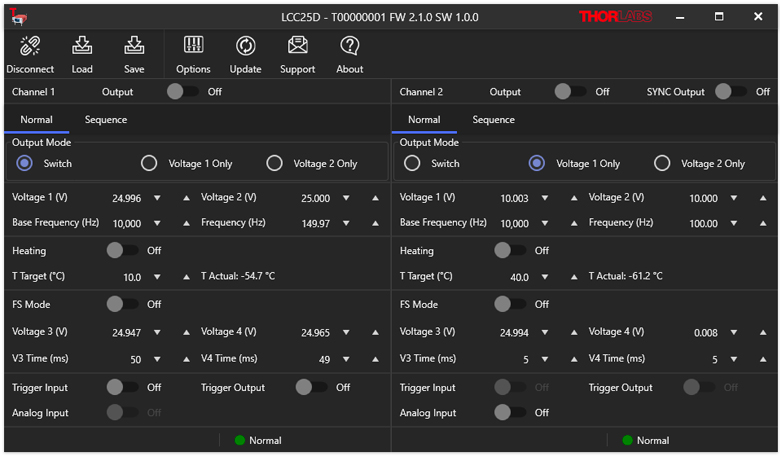 Figure 3.2 Screenshot of the GUI interface for the LCC25D Controller