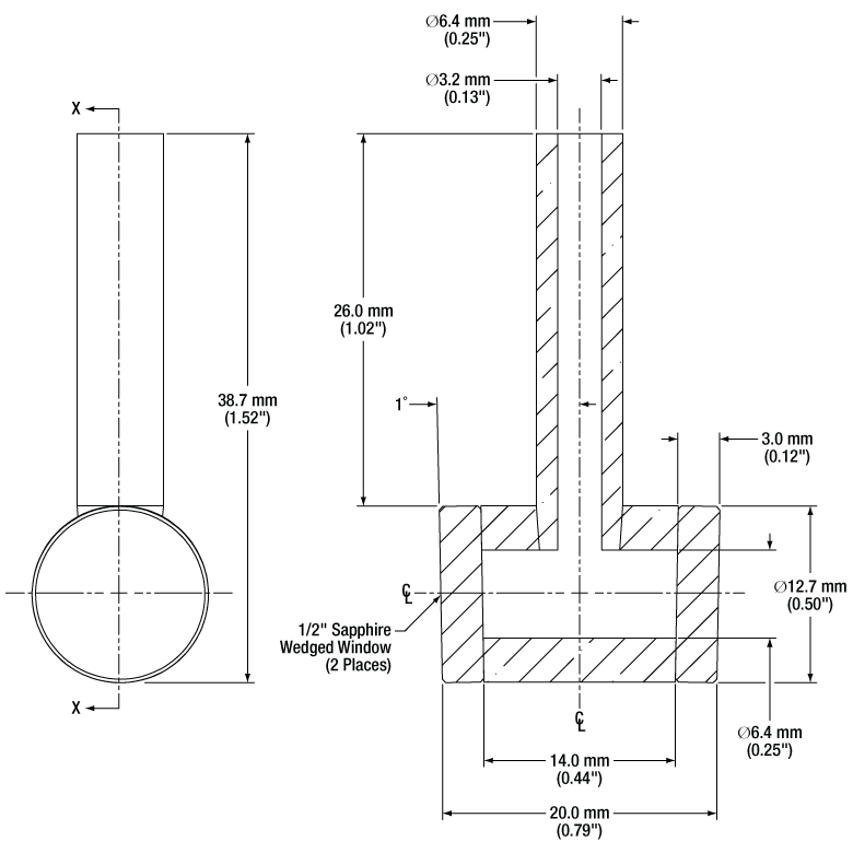 - Ø1/2" Wedged Sapphire Windows Angled at 1°