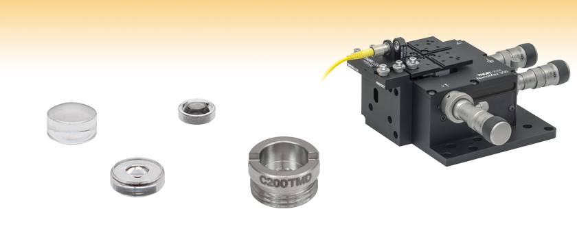 Several of these molded glass lenses are available premounted in non-magnetic 303 stainless steel lens cells that are engraved with the mounted part number for easy identification. The mounted versions feature an external M6 x 0.5 metric thread, making it easy to integrate them into an optical setup or OEM application. Mounted aspheres are readily adapted to our SM1 series of lens tubes by using our Aspheric Lens Adapters. They can be used as a drop-in replacement for multi-element microscope objectives by combining the lens with our Microscope Objective Adapter Extension Tube.