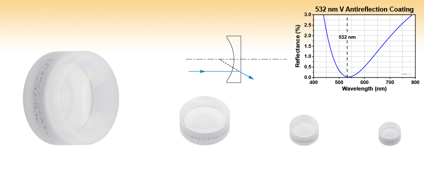 UV Fused Silica Plano-Concave Lenses, V-Coated: 532 nm