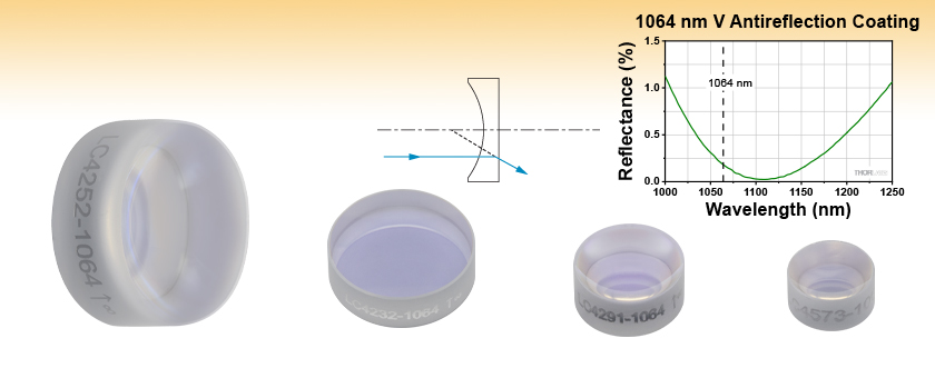 UV Fused Silica Plano-Concave Lenses, V-Coated: 1064 nm