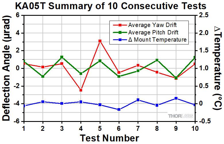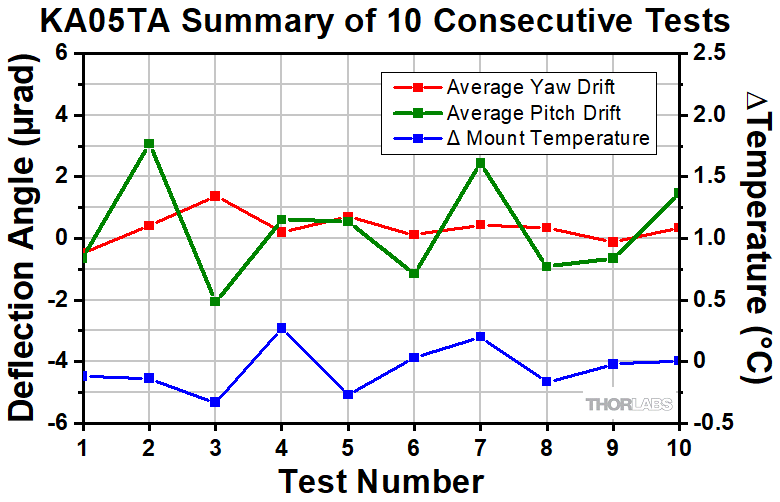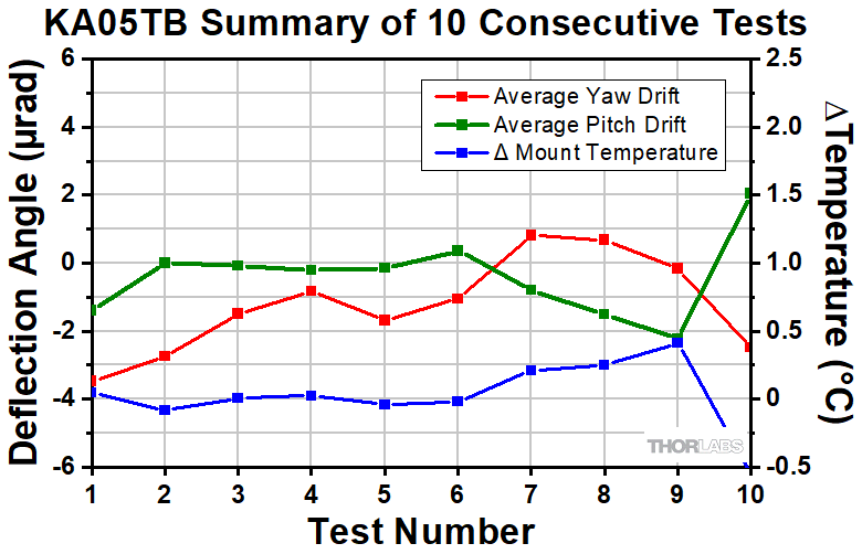 Conclusions: PolarisKA Mirror Mounts are high-quality, ultra-stable mounts that will reliably return a mirror to its original position after cycling through a temperature change. As a result, PolarisKA mounts are ideal for use in applications that require long-term alignment stability.