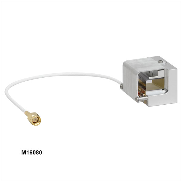 The M16080 Acousto-Optic Modulator (AOM) is a compact, conduction-cooled device designed for integration into custom or OEM systems. An integrated SMA connector allows an 80 MHz RF signal to drive the built in transducer. This modulator is prepared with a high-quality anti-reflection (AR) V-coating for operation near 1064 nm, with ≥99% transmission.