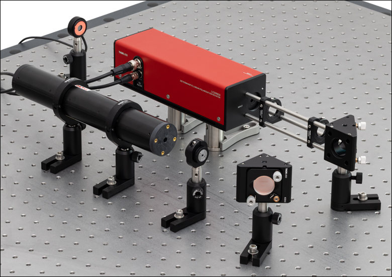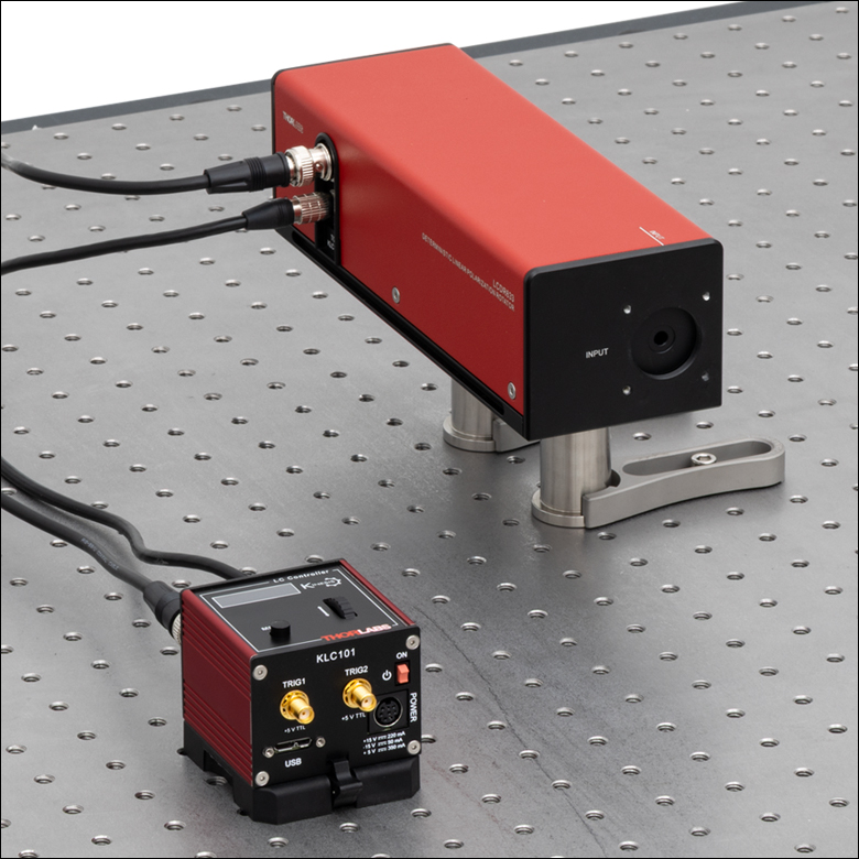 The KLC101 liquid crystal controller is designed with the feedback needs of the LCDR633 in mind and provides active DC offset compensation while applying an AC voltage (0 to 25 Vrms). The DC offset compensation automatically zeros the DC bias across the LC device in order to counteract the buildup of charge.