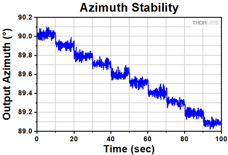 The azimuth detection module contains photodiodes which collect the intensity of four linear polarization states of the sampled light: -45°, 0°, 45°, and 90°. These intensities are then used to compute the actual output azimuth.