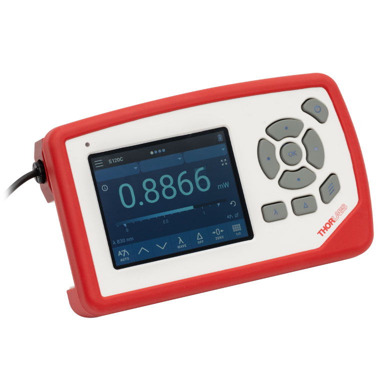 Thorlabs' C-Series Thermal Power Sensors are collectively able to detect power ranges from 10 µW to 200 W and wavelength ranges from 190 nm to 20 µm. These thermopile-based sensors are ideal choices for measuring broadband spectra from amplified spontaneous emission (ASE) sources, light emitting diodes (LEDs), filament lamps, swept-wavelength lasers, and other sources. In addition, thermal power sensors do not saturate, which makes them well suited to measuring pulsed sources with high pulse peak powers or long-duration pulses. These thermal power sensors also exhibit low dependency on the angle and position of the incident light beam. They are preferred for applications that cannot tolerate the strong wavelength dependencies and/or saturation thresholds of photodiode sensors. However, thermal power sensors generally have lower power resolutions and longer response times. We offer a wide range of thermal power sensors, with each including different design features.