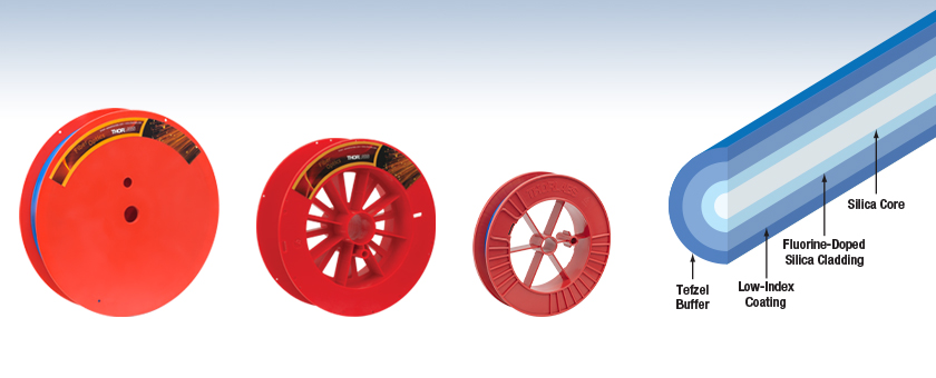 • Fluorine-Doped Silica Cladding with Low-Index Coating (Second Cladding)
