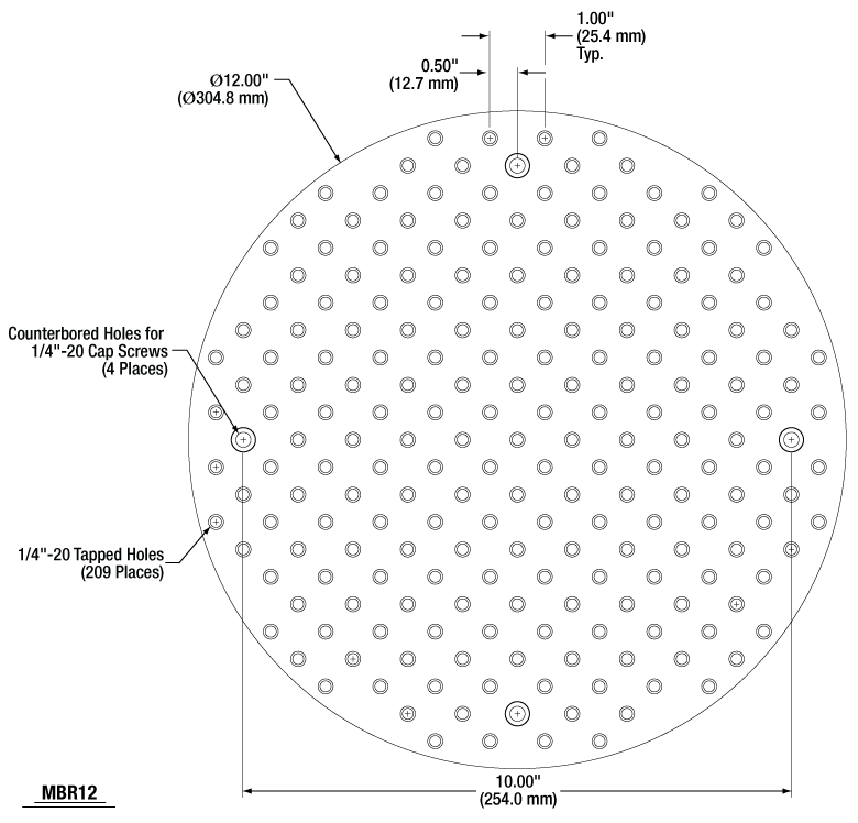 | Holes | 1/4"-20 Taps | M6 Taps |