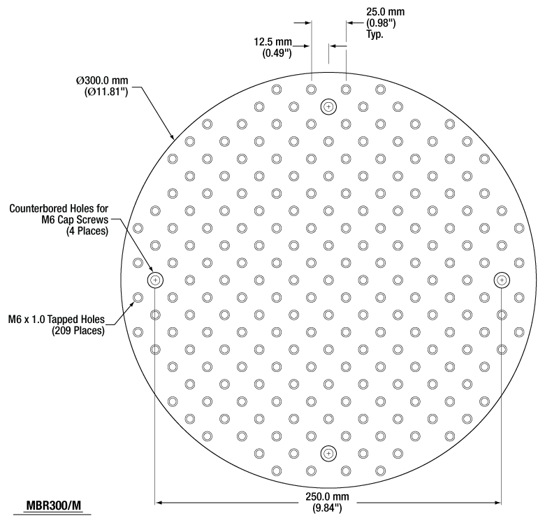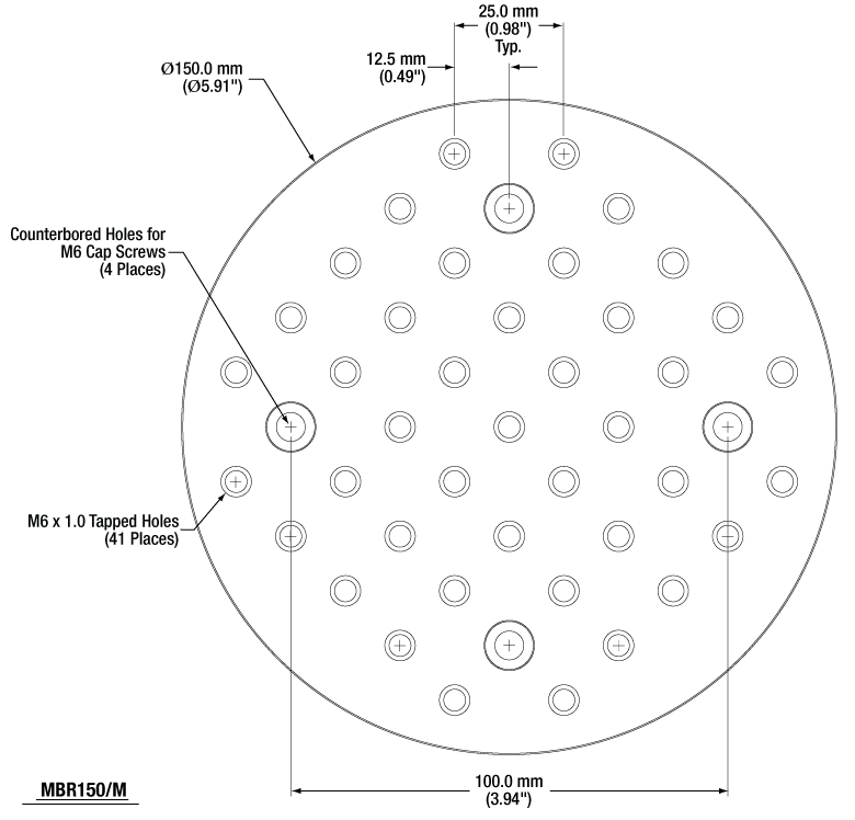 | Counterbores | Four 1/4" Holes | Four M6 Holes |
