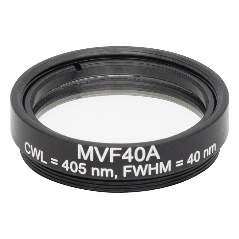MVF40A - Mounted Machine Vision Bandpass Filter, M27 x 0.5 External Threads, CWL = 405 nm, FWHM = 40 nm | |||||||||||||||||||||||||||||||||||||||||||||||||||||||||||