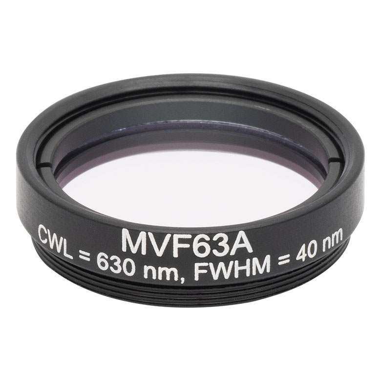 MVF63A - Mounted Machine Vision Bandpass Filter, M27 x 0.5 External Threads, CWL = 630 nm, FWHM = 40 nm | |||||||||||||||||||||||||||||||||||||||||||||||||||||||||||
